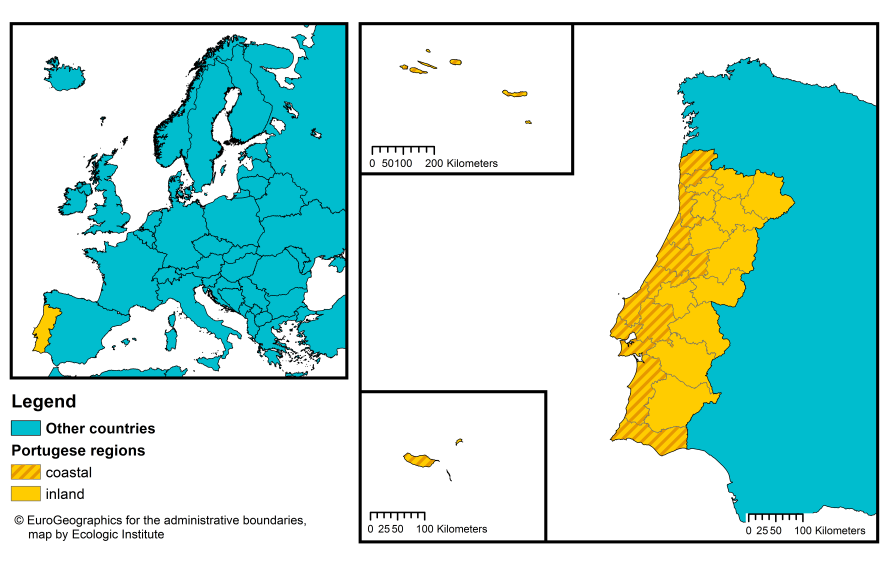 The EU Floods Directive 2007/60/EU is implemented by the Ministry of Environment and Water, through its eight River Basin Directorates via the 2010 Water Act. Thus far, Portugal has conducted its preliminary flood risk assessment (December 2011). Despite the extent of its coastal territory (more than double the EU average), Portugal did not produce maps for sea water flooding as part of its flood hazard and risk maps at the time of reporting in 2014. Maps for the autonomous region of the Azores were produced, but not for Madeira. Furthermore  impacts of coastal protection/defences or climate change were also not considered at that time. Flood risk management plans (2015) are available for seven hydrographic regions. (For details of Floods Directive implementation in Portugal and other EU Member States, please read the RISC-Kit comparative assessment of Member State implementation of the Floods Directive.)