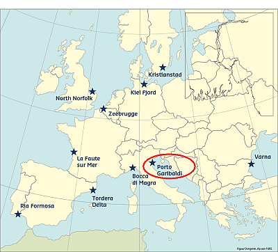 The Case Study site of Porto Garibaldi-Bellocchio is a 9km stretch of coast, located in the Ferrara and Ravenna provinces, in the region of Emilia-Romagna, northern Italy, facing the Northern Adriatic Sea. The site has three main coastal towns: Porto Garibaldi, Lido degli Estensi and Lido di Spina.